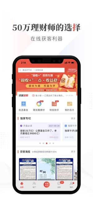 择尔裕智慧官方版是为理财师打造提供的营销获客利器,支持自选基金、朋友圈素材、转发助手等功能,独家专栏推荐,获客海报查看,助力提升效率,还支持多账户管理客户,一键智能诊断分析,解决客户基金投资痛点,全维度客户深度画像,精准营销,拓客更加轻松!