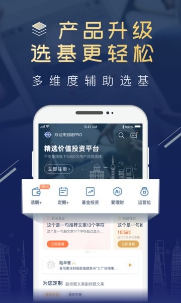 2.全新陆基金首页体验:自选动态、明星产品、五星基金专区、人气之选、热门主题、高端专区,选基更轻松