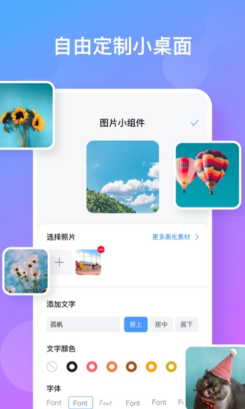 多种多样的小组件,拥有图片小组件、运动步数、倒数日、数字时钟等功能,能够满足您对桌面设计的日常所需。