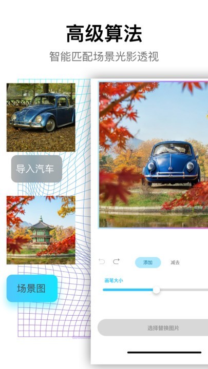 -- 高级算法,智能匹配场景光影透视,智能地与多种不同的场景进行光线和光线的对比