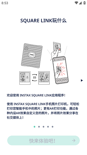使用instaxsquarelink手机照片打印机,可轻松打印您智能手机中的照片;更有ar打印功能,通过各种内设ar效果自定义您的照片,并将照片效果分享在社交媒体上!