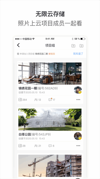 1、无限云存储:照片上云项目成员一起看
