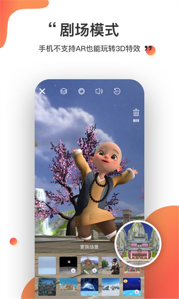 用户可以打开AR摄像头,通过简单的操作,将AR模型放在真实世界中,创造各种神奇的景象,用AR就能创造电影里才能出现的特技。