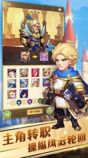 游戏内设置有四大种族,分别为精灵、人族、炼狱、亡灵。四大种族分别拥有各自的主角英雄,根据剧情发展解锁王城后,主角转职功能也随即开启,主角转职分为一阶转职和二阶转职,转职后将使主角的实力提升巨大,并拥有更强力的技能。