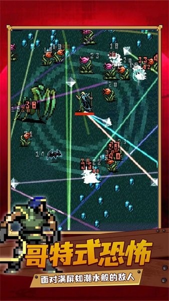 《吸血鬼幸存者》是一款以割草玩法为核心的射击手游,玩家需要通过不断升级技能来对抗源源而来的恶魔攻击。游戏背景设定在哥特式恐怖氛围的地下城,玩家扮演一位冒险家,在地狱军团中生存下去。游戏特色包括丰富的角色选择、逐步解锁的角色属性和技能系统,以及通过金币购买武器和装备来增强实力。