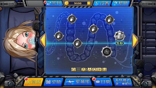 1、游戏采用关卡模式,开放不同病毒怪物以及强力武器。