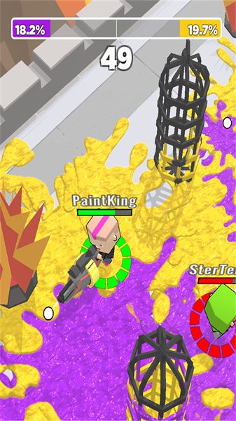 3、用颜料涂满整个场地,与你的对手停止抢地大作战,非常有趣欢乐的过程带给你更多乐趣;