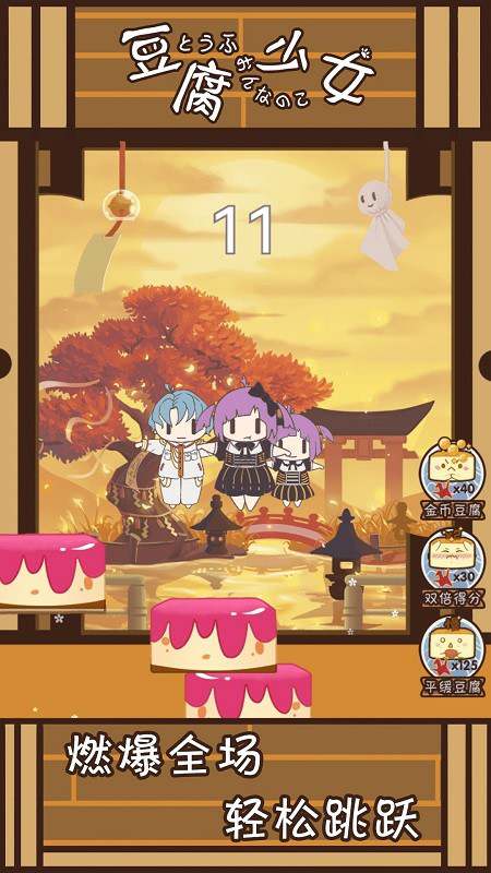 5、可爱的豆腐女孩不断的跳跃,搭建更高的豆腐塔,争取挑战更高的游戏分数。