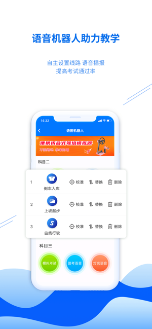 2、路考训练:直观科目三路考训练要素,根据车管所标准考试标准全程辅助,语音教学。
