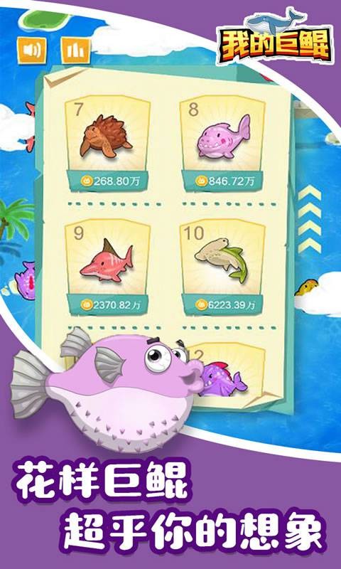 我的巨鲲手游有着轻松休闲的合成玩法,游戏刚开始玩家的渔场只有小小的鱼儿,你需要把相同等级的进行合并来升级解锁更高级的品种,一直合下去最终会出现多种奇特的生物,让你大开眼界,即使是在离线期间它们也会自动为你产生金币收益哦!