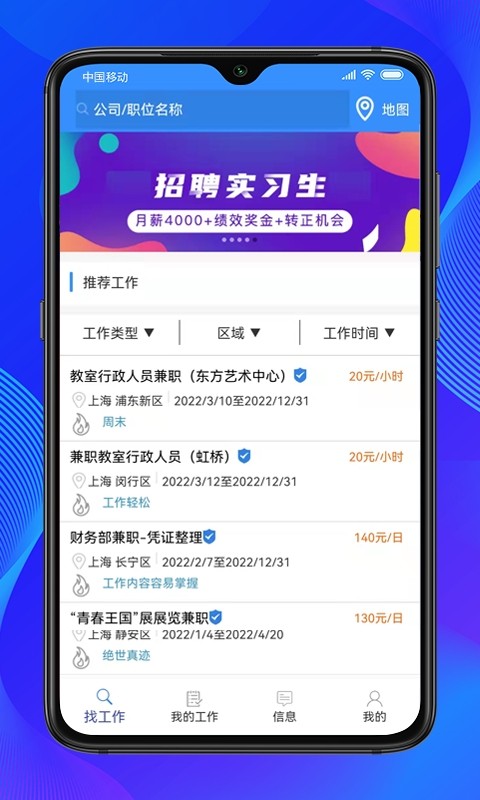来吧,与众不同的你!这里各类优质靠谱的实习兼职机会,总有一款适合你。新职位及时提醒,申请动态时时更新,让你不错过任何一个大好机会。每份工作的报班,开启贴心的日历模式,一目了然;薪资单清晰,发放状态即时掌握,再多的RMB都不怕错啦。让彩虹般的人生,在乐业天空绽放!