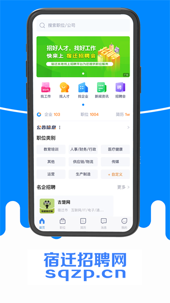 宿迁招聘网是宿迁地区活泼人才招聘网站,规模大且具备人力资源资质的企业,是宿迁地区的人才招聘网站。人才市场认可的单位,主办宿迁本地大型招聘会。最新招聘信息请进入网站或APP。