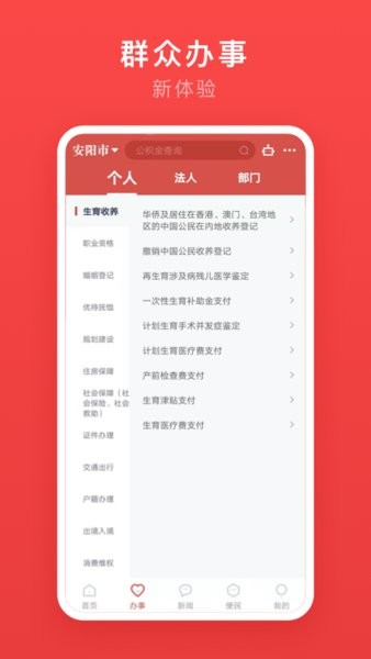 河南安馨办app下载安装最新版本是为群众办公更加方便打造的安阳市政务服务平台,使用这款软件让用户无论是生活服务,还是政务服务都可以享受更加快速的办事进度,极大的方便了用户的生活。