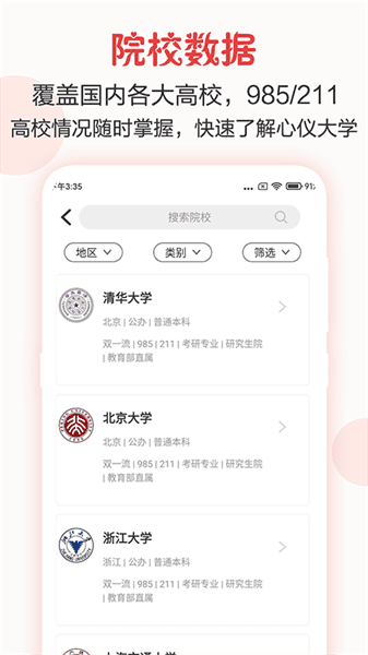 1、这里有很多高考搜索数据,还有院校列表,可以根据你的成绩自动推荐适合你的学校和院校。