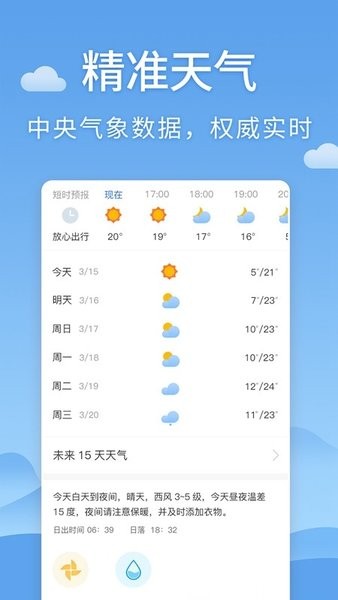 轻松查阅24小时内天气变化,提早预防早晚温差过大;