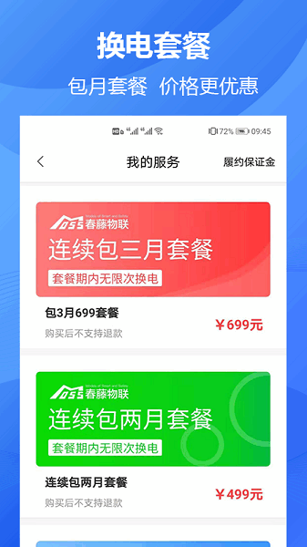 春藤物联APP是一款功能强大的充电管理软件,支持多种服务,包括电柜换电、充电、车辆维修等。它通过实时定位电池位置、智能导航等功能,极大地方便了用户的日常出行和充电需求。用户可以通过扫码快速充电或更换满电电池,并在商城充值押金或购买优惠套餐。此外,APP还提供移动救援服务,帮助用户应对突发情况。