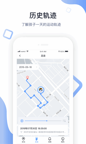 4、历史轨迹记录随时可以查询,再也不怕孩子走失;