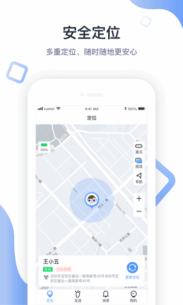 1、充分利用定位技术,为孩子提供走失定位、紧急救助,亲情通话提醒等功能;