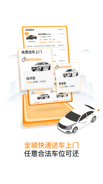 送车上门:一键下单,专人送车上门,15分钟内极速送达,租车比打车还简单。