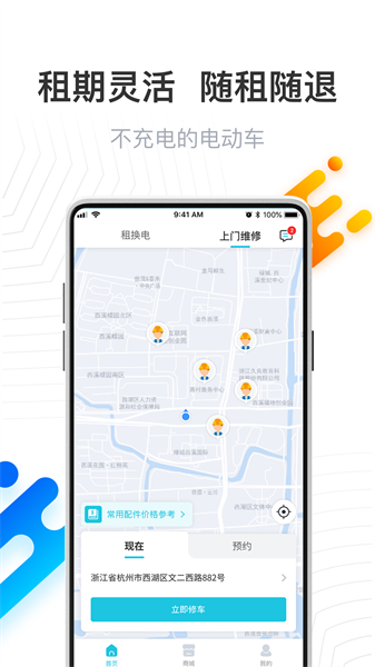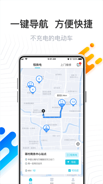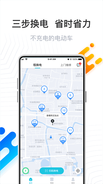 用起来也挺简单的,点开app就能看到附近的车辆,直接扫码就能骑走,押金秒退真的很省心。最让我觉得方便的是它支持换电服务,手机上就能找到最近的换电柜预约电池,完全不用愁没电的问题。