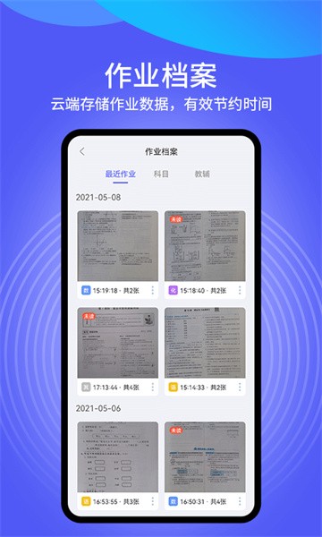 (2)作业档案:可以查看孩子在台灯端学习时提交的作业。