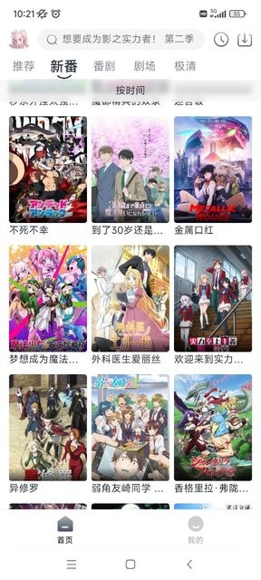 1、界面设计清爽干净,分为推荐、新番、番剧、剧场、极清五个板块