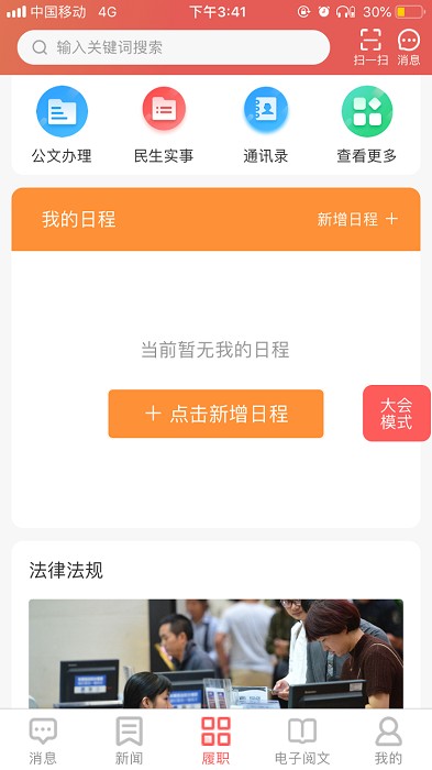 宁波市人大代表可以通过宁波人大履职软件随时查看议案建议,日程安排,发表履职,获取人大实时新闻信息,进行意见建议征集等,方便代表履职。