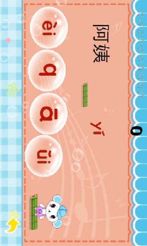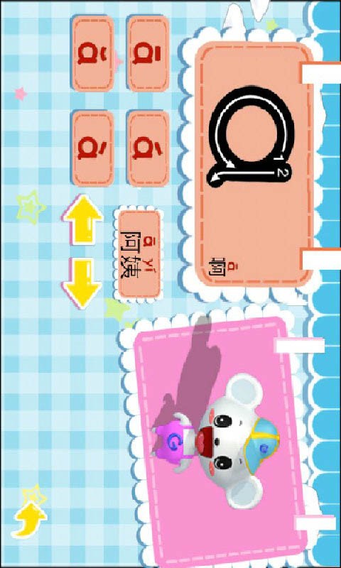 早教学拼音app针对声母、韵母与整体音节展开教育,在这里系统会依次播放不同声调下声母、韵母和整体音节的发音,同时也会在卡片上显示书写顺序,让孩子在学会正确的发音与书写方法;软件针对学习知识巩固推出小游戏,在这里需要根据显示的汉字选择正确的拼音,只要选中正确拼音小动物才能顺利过关,一旦选错拼音小动物就会掉下去;软件始终贯彻寓教于乐的理念,力求让孩子在快乐中学习。