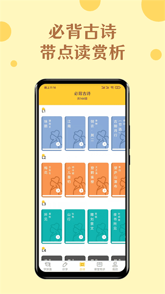4、精选必背的144首经典古诗词,从标准朗读到古诗背景解读,一览中国古诗词经典。