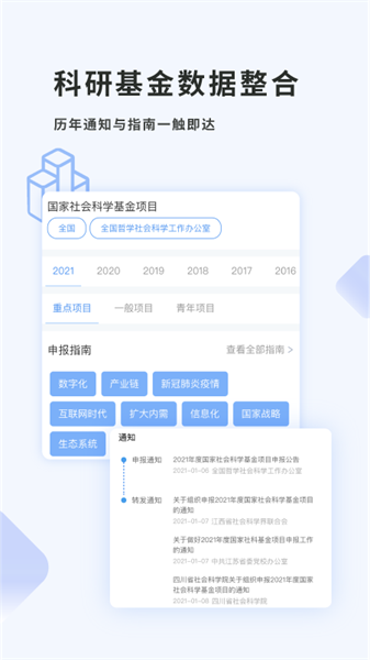 3、学术数据与课题基金数据多维数据精准推荐更优课题,让「不知道报什么」成为过去