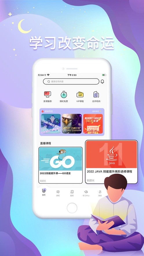 CoderBar码农吧app最新版主要提供it方面的职业培训服务,这里有免费课和vip课程,用户可以在线看直播课进行学习,不管你是有基础还是小白用户,这里都能找到你需要的课程,还有超多题库资源可供刷题巩固,能查看详细的已购直播和录播课程。