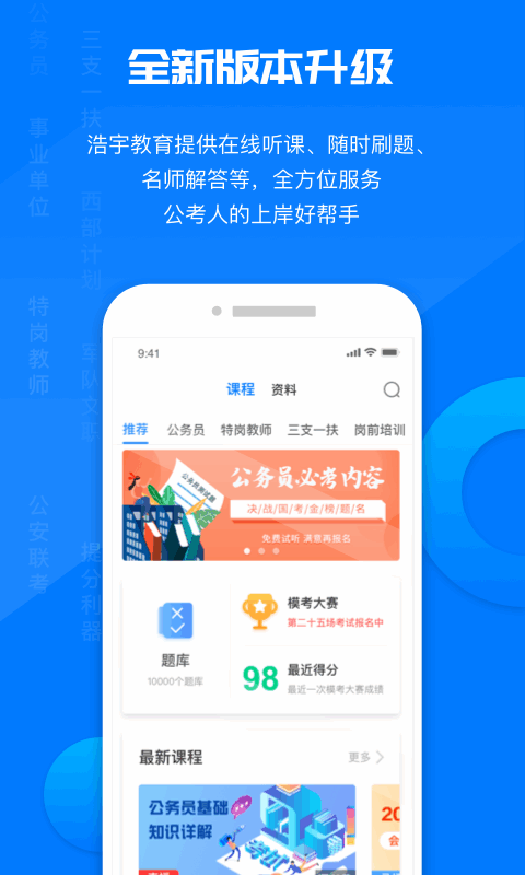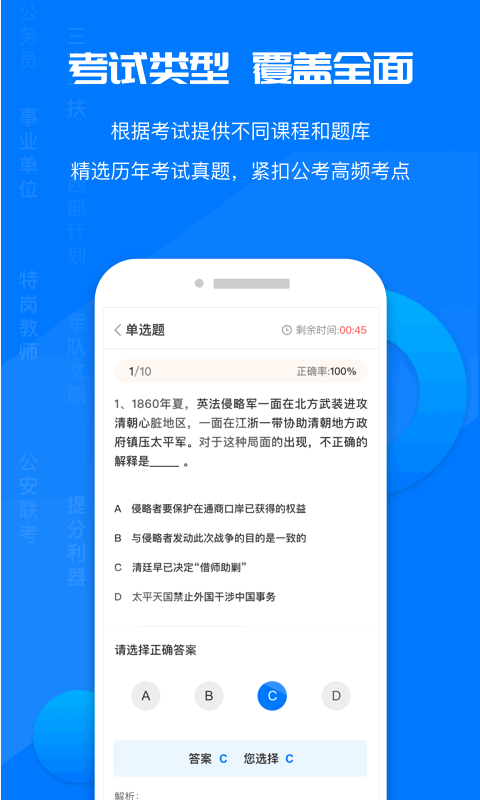 公考课堂是公务员、事业单位、三支一扶、西部计划、特岗教师、军队文职、公安联考等各类招录考试的提分利器!提供在线听课、随时刷题、名师解答等全方位服务,是公考人的上岸好帮手!