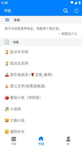这个时候就可以点击底部的“书城”,选择要看的小说进行阅读了。