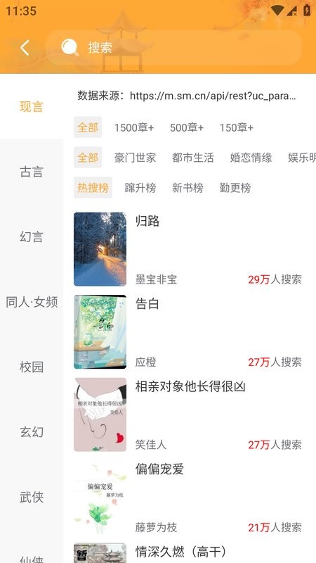 网罗热门分类,陪你度过每一个日夜(都市、言情、玄幻、武侠、穿越、悬疑等);
