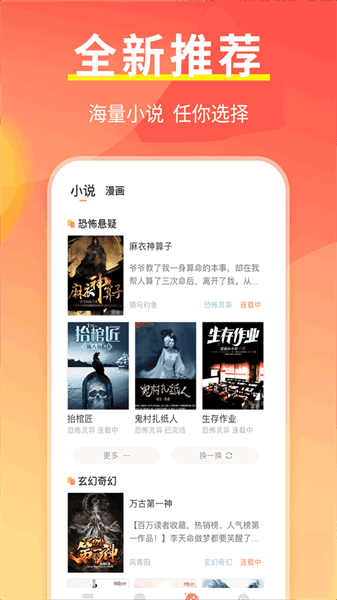 开心阅读器app官方免费版,一个专门为广大的小说漫画迷们打造的在线追书平台,软件中有大量的小说和漫画资源提供给大家阅读,且类型丰富多样,不管是正在连载的还是已经完结的小说漫画,基本都包括在内,超级的方便实用,是大家必备的小说神器哦,有需要的朋友快来下载用起来吧~