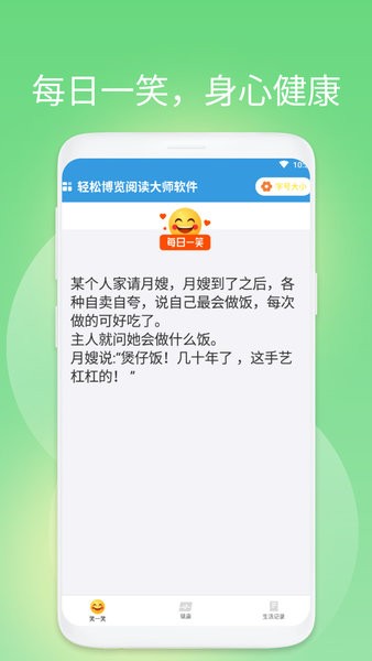 这款阅读大师App简直是我这种喜欢看书又不爱折腾手机的人的福音!界面设计得很简洁,打开就能轻松阅读,字体还能放大,再也不用担心看久了眼睛疲劳了。最让我惊喜的是它不仅有各种书籍推荐,还有新闻资讯、生活小百科等丰富内容,随时随地都能学到新东西。特别是它的“笑一笑”功能,每天都能看到一些有趣的小段子,心情瞬间就变好了。