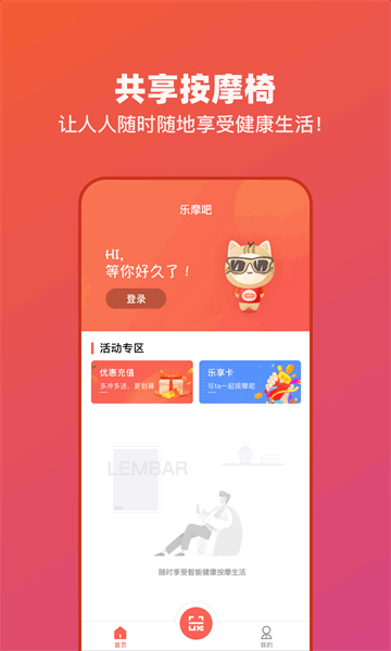 乐摩吧按摩椅官方版是一款非常顺应共享新时代的共享按摩app,一键扫码即可享受按摩椅服务,还可在线充值,操作十分的方便,快速定位附近的按摩椅,让你轻轻松松享受按摩服务,功能非常的强大,有需要的用户就快来点击下载使用吧!
