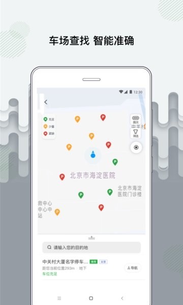 2、快速查找目的地停车场,停车费、空余车位实时掌握,掌上车位预定,轻松出行。