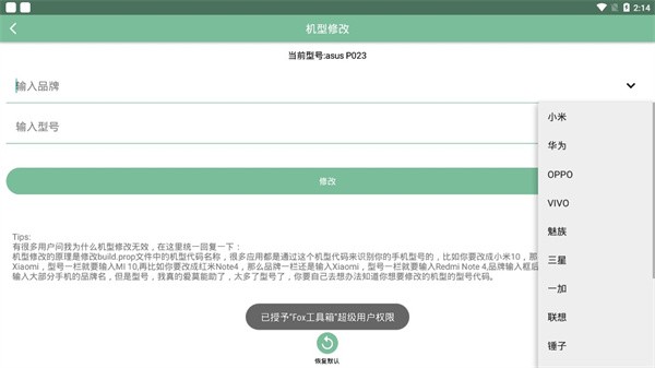 fox工具箱app是一个很好用的手机工具箱软件,软件中有很多好用的功能,可以帮助大家修改手机的基本信息,软件操作起来简单方便,并且适用于多种不同型号的手机使用。通过这个软件可以让用户轻松的管理手机,自由安装多个应用,有需要的用户可以下载体验。