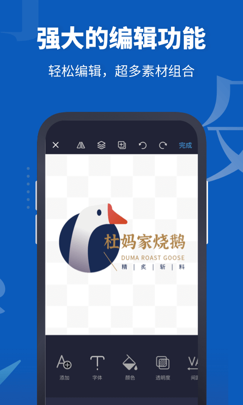 通过调研上千个用户的设计习惯,我们把编辑页面的功能与操作进行升级打磨,现已支持旋转缩放,撤销、反撤销、图层等功能,不仅如此,炫酷的图形纹理功能,让logo设计更出彩。
