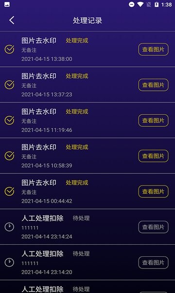 ・处理的图片可以在处理记录中查看处理进度,如果已经处理完成,可以点击进行查看与下载。