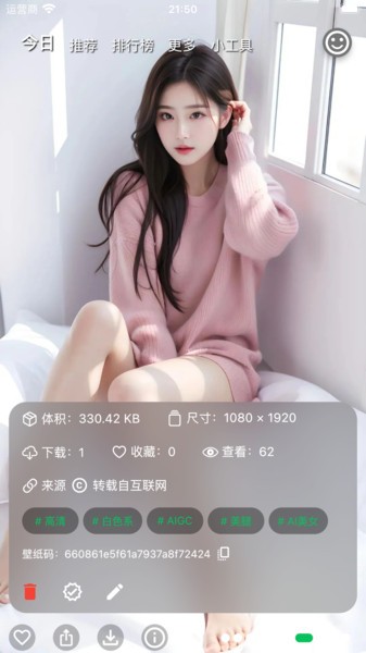 -- 主打美女写真壁纸,但也有很多AI生成的、风景自然、萌宠等美图