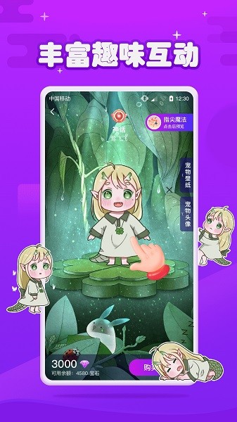 超多宠物形象:元气酱提供风格多样的卡通形象供你挑选。甜美可爱小公举、天然呆小正太、软萌小猫咪、酷炫外星人……总有一款击中你~