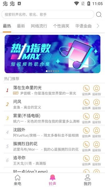 3.每天我们都会在排行榜当中进行寻找,找到时下最热门的铃音。