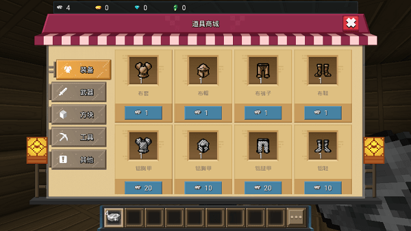 -使用手中的武器和方块,可以在中心岛屿收集到更多的资源。