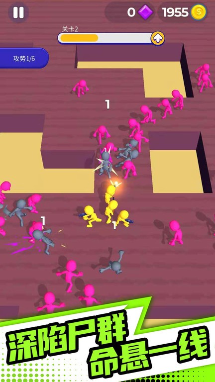 2、简洁的3D画风,玩家的目标就是带领自己的队伍突出重围,消灭敌人。
