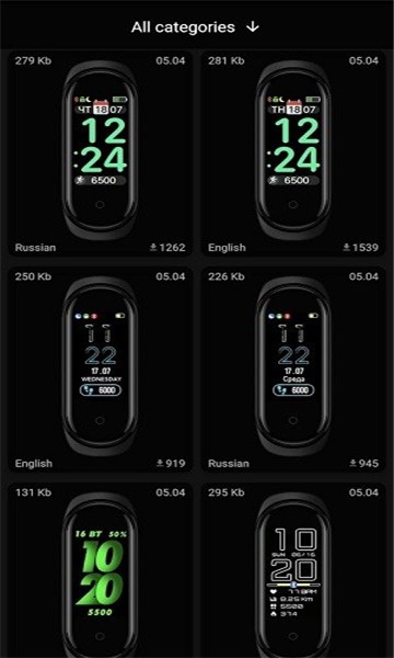 借助应用程序“ Mi Band 5 Faces”,您将找到所有用于语言翻译的表盘,只需单击一下即可下载,并在几秒钟内准备好使用 Mi Fit 进行刷新。