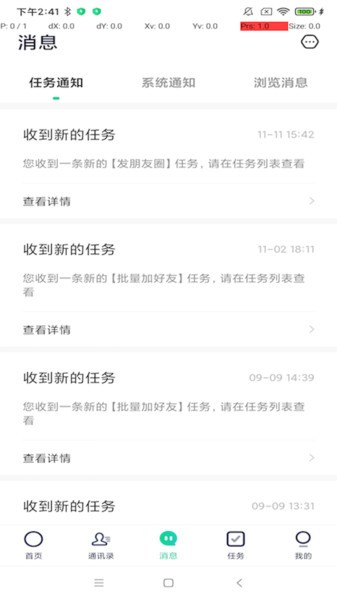 管理者可以设置朋友圈群发、消息群发、添加好友等营销任务,并对任务完成情况及效果进行统一管理。