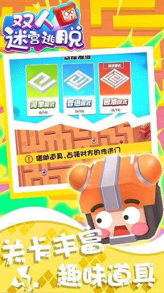 双人迷宫逃脱手游是可以双人挑战的迷宫闯关游戏,画面精致卡通,q萌可爱,玩法丰富有趣,关卡多种多样,难度循序渐进,还提供多种模式选择,可以与好友一起对战,不断完成游戏目标,获取更多奖励,解锁更多成就,操作灵活易上手!