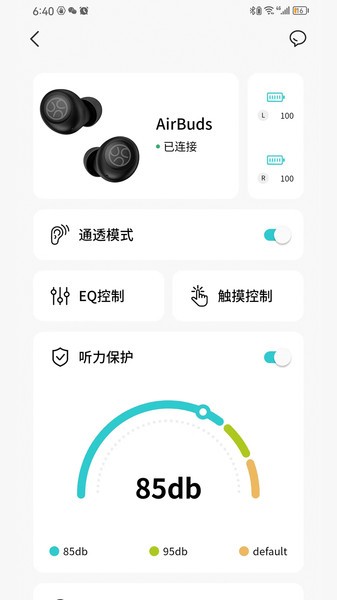 为了保护您的听力健康,JSoul耳机控制App提供了安全聆听级别设置。您可以在默认输出、95dB或85dB之间切换,确保在享受音乐的同时,也能保护好自己的耳朵。